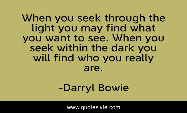This page presents the quote "When you seek through the light you may find what you want to see. When you seek within the dark you will find who you really are.". Author of this quote is Darryl Bowie. .