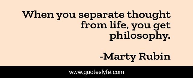 This page presents the quote "When you separate thought from life, you get philosophy.". Author of this quote is Marty Rubin. This quote is about thought, life, philosophy,.