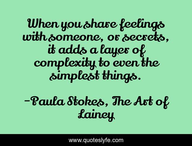 This page presents the quote "When you share feelings with someone, or secrets, it adds a layer of complexity to even the simplest things.". Author of this quote is Paula Stokes, The Art of Lainey. This quote is about relationships, secrets, feelings,.