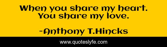 This page presents the quote "When you share my heart. You share my love.". Author of this quote is Anthony T.Hincks. This quote is about life, love, being, couple, philosophy, share, together, affection,.