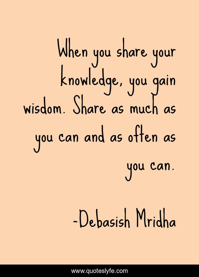 This page presents the quote "When you share your knowledge, you gain wisdom. Share as much as you can and as often as you can.". Author of this quote is Debasish Mridha. This quote is about knowledge, philosophy, debasish-mridha, share-knowledge, wisdom, quotes, inspirational, enthusiasm, education,.