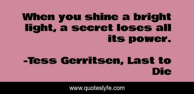 This page presents the quote "When you shine a bright light, a secret loses all its power.". Author of this quote is Tess Gerritsen, Last to Die. .