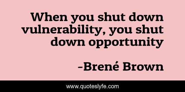This page presents the quote "When you shut down vulnerability, you shut down opportunity". Author of this quote is Brené Brown. This quote is about vulnerability, opportunity,.