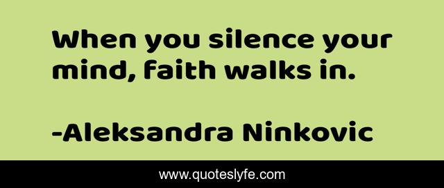 This page presents the quote "When you silence your mind, faith walks in.". Author of this quote is Aleksandra Ninkovic. This quote is about faith, mind, silence, spirituality,.