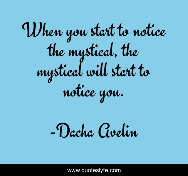 This page presents the quote "When you start to notice the mystical, the mystical will start to notice you.". Author of this quote is Dacha Avelin. This quote is about occult, occultism, witchcraft, spirituality, witch, mysticism, metaphysics, spells,.