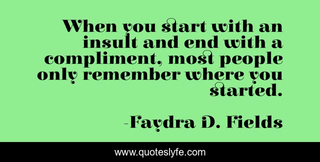 This page presents the quote "When you start with an insult and end with a compliment, most people only remember where you started.". Author of this quote is Faydra D. Fields. .