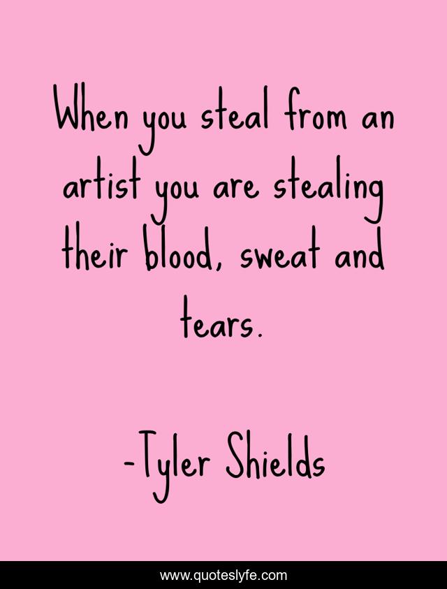 This page presents the quote "When you steal from an artist you are stealing their blood, sweat and tears.". Author of this quote is Tyler Shields. This quote is about art, artist,.