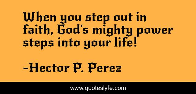 This page presents the quote "When you step out in faith, God's mighty power steps into your life!". Author of this quote is Hector P. Perez. This quote is about faith, christian-living, trust-god,.