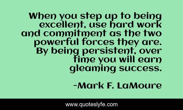 When you step up to being excellent, use hard work and commitment as the two powerful forces they are. By being persistent, over time you will earn gleaming success.