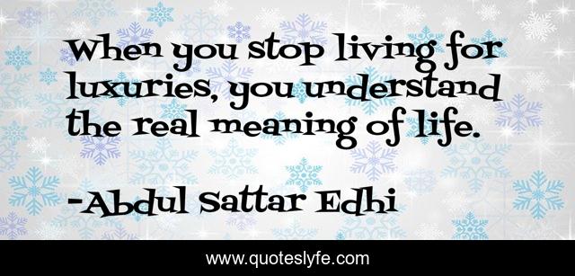 This page presents the quote "When you stop living for luxuries, you understand the real meaning of life.". Author of this quote is Abdul Sattar Edhi. .