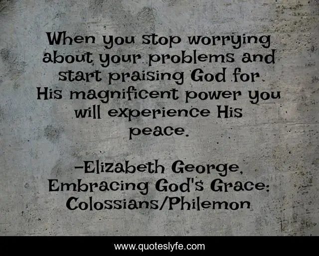 "Elizabeth George, Embracing God's Grace: Colossians/Philemon Quotes." Quoteslyfe.com, 2025. Sun. 07 Dec. 2025. <https://www.quoteslyfe.com/quote/When-you-stop-worrying-about-your-problems-115035>.