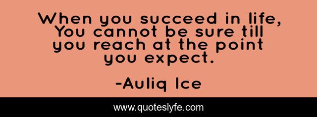 This page presents the quote "When you succeed in life, You cannot be sure till you reach at the point you expect.". Author of this quote is Auliq Ice. This quote is about achievements, life-achievements, opportunity, change, success,.