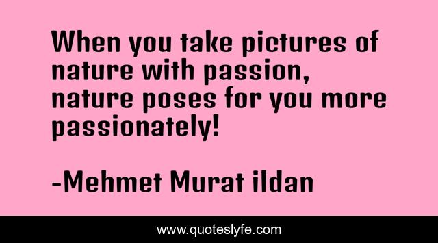 This page presents the quote "When you take pictures of nature with passion, nature poses for you more passionately!". Author of this quote is Mehmet Murat ildan. This quote is about photo, photography, poses, nature, pictures,.