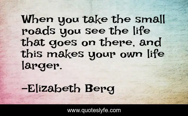 "Elizabeth Berg Quotes." Quoteslyfe.com, 2025. Sat. 06 Dec. 2025. <https://www.quoteslyfe.com/quote/When-you-take-the-small-roads-you-240464>.