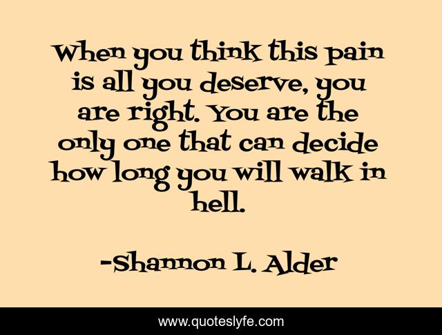When you think this pain is all you deserve, you are right. You are the only one that can decide how long you will walk in hell.