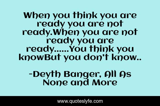 This page presents the quote "When you think you are ready you are not ready.When you are not ready you are ready......You think you knowBut you don't know..". Author of this quote is Deyth Banger, All As None and More. This quote is about don-t, think, but,.