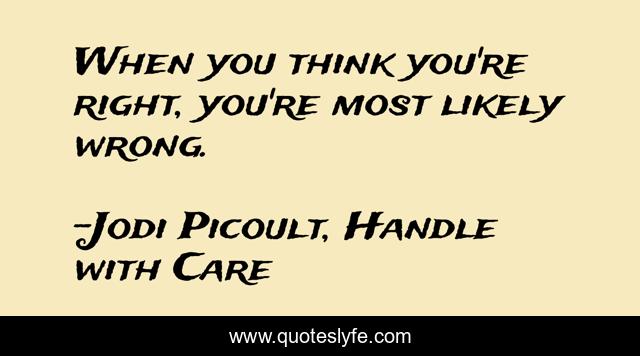 This page presents the quote "When you think you're right, you're most likely wrong.". Author of this quote is Jodi Picoult, Handle with Care. This quote is about wrong, right, think, truth,.