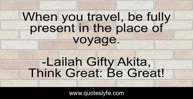 "Lailah Gifty Akita, Think Great: Be Great! Quotes." Quoteslyfe.com, 2025. Mon. 08 Dec. 2025. <https://www.quoteslyfe.com/quote/When-you-travel-be-fully-present-in-98724>.