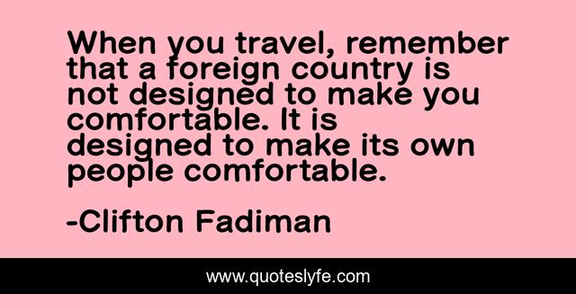 This page presents the quote "When you travel, remember that a foreign country is not designed to make you comfortable. It is designed to make its own people comfortable.". Author of this quote is Clifton Fadiman. .