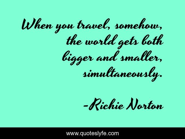 "Richie Norton Quotes." Quoteslyfe.com, 2025. Mon. 08 Dec. 2025. <https://www.quoteslyfe.com/quote/When-you-travel-somehow-the-world-gets-72171>.