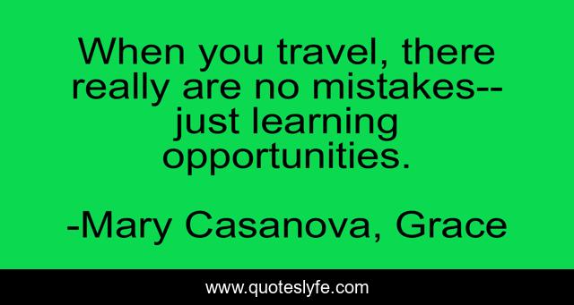 This page presents the quote "When you travel, there really are no mistakes--just learning opportunities.". Author of this quote is Mary Casanova, Grace. This quote is about advice, mistakes, travel, encouragement,.