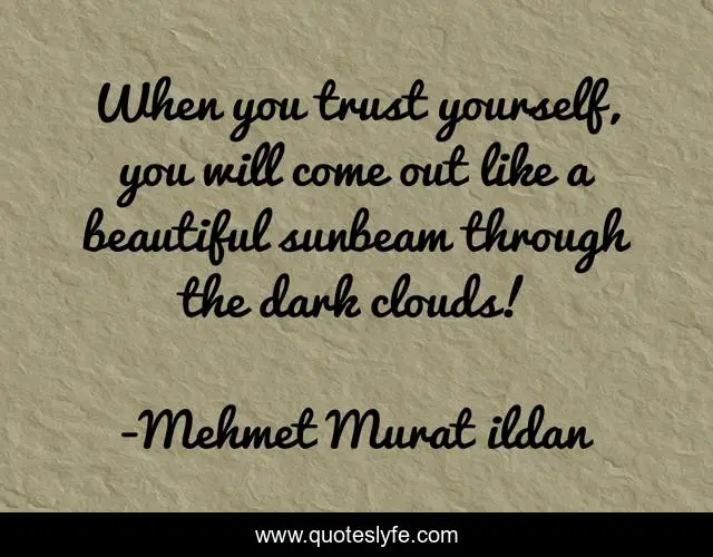This page presents the quote "When you trust yourself, you will come out like a beautiful sunbeam through the dark clouds!". Author of this quote is Mehmet Murat ildan. .