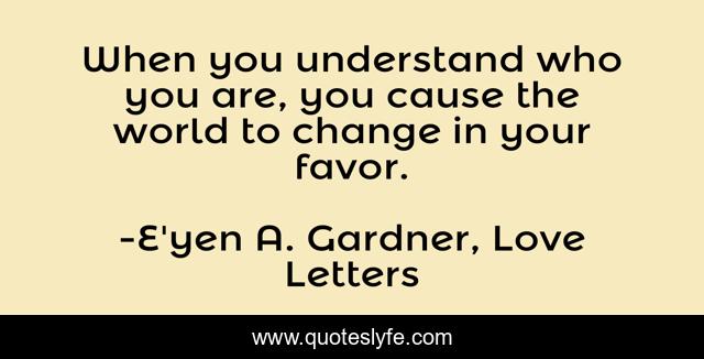 This page presents the quote "When you understand who you are, you cause the world to change in your favor.". Author of this quote is E'yen A. Gardner, Love Letters. This quote is about identity, love-letters, love, dream, affection,.