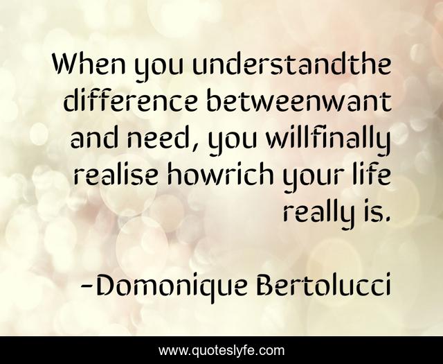 "Domonique Bertolucci Quotes." Quoteslyfe.com, 2025. Fri. 05 Dec. 2025. <https://www.quoteslyfe.com/quote/When-you-understandthe-difference-betweenwant-and-need-215316>.