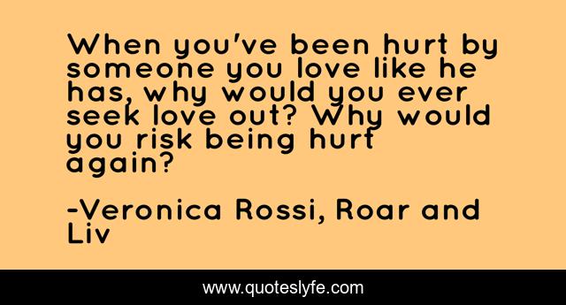 This page presents the quote "When you've been hurt by someone you love like he has, why would you ever seek love out? Why would you risk being hurt again?". Author of this quote is Veronica Rossi, Roar and Liv. This quote is about sad-but-true, love, affection, hurt,.