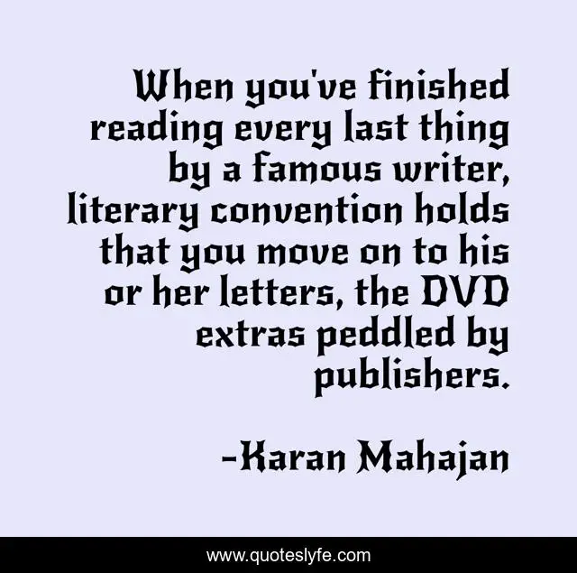 This page presents the quote "When you've finished reading every last thing by a famous writer, literary convention holds that you move on to his or her letters, the DVD extras peddled by publishers.". Author of this quote is Karan Mahajan. This quote is about reading, her,.