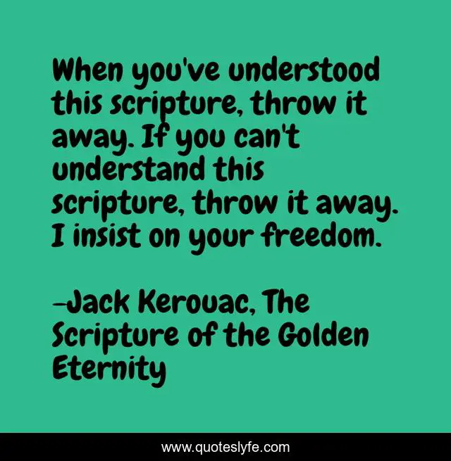 "Jack Kerouac, The Scripture of the Golden Eternity Quotes." Quoteslyfe.com, 2025. Fri. 05 Dec. 2025. <https://www.quoteslyfe.com/quote/When-you-ve-understood-this-scripture-throw-54343>.