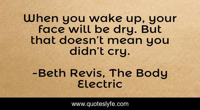 This page presents the quote "When you wake up, your face will be dry. But that doesn’t mean you didn’t cry.". Author of this quote is Beth Revis, The Body Electric. This quote is about dry, ella-shepard, face, tears, crying, waking-up, dreams,.