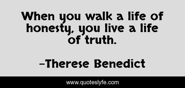 This page presents the quote "When you walk a life of honesty, you live a life of truth.". Author of this quote is Therese Benedict. This quote is about relationships, sprituality, love, honesty, affection, inspiration,.