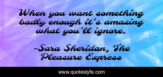 This page presents the quote "When you want something badly enough it’s amazing what you’ll ignore.". Author of this quote is Sara Sheridan, The Pleasure Express. .