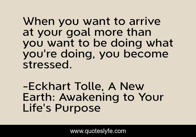 This page presents the quote "When you want to arrive at your goal more than you want to be doing what you're doing, you become stressed.". Author of this quote is Eckhart Tolle, A New Earth: Awakening to Your Life's Purpose. This quote is about stress, goals,.