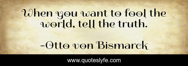 This page presents the quote "When you want to fool the world, tell the truth.". Author of this quote is Otto von Bismarck. This quote is about fool, world,.