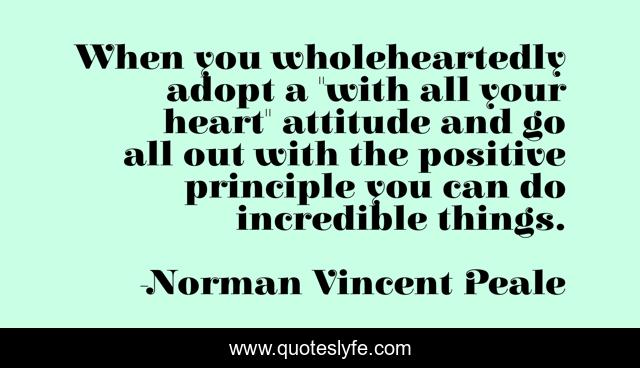 This page presents the quote "When you wholeheartedly adopt a "with all your heart" attitude and go all out with the positive principle you can do incredible things.". Author of this quote is Norman Vincent Peale. .