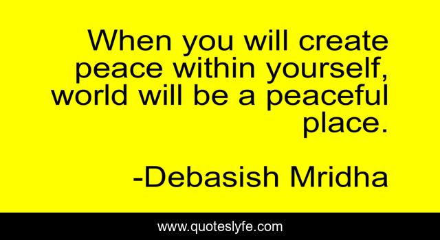 This page presents the quote "When you will create peace within yourself, world will be a peaceful place.". Author of this quote is Debasish Mridha. This quote is about life, love, knowledge, inspirational, intelligence, philosophy, wisdom, quotes, affection,.