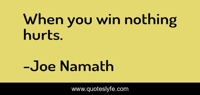 This page presents the quote "When you win nothing hurts.". Author of this quote is Joe Namath. .