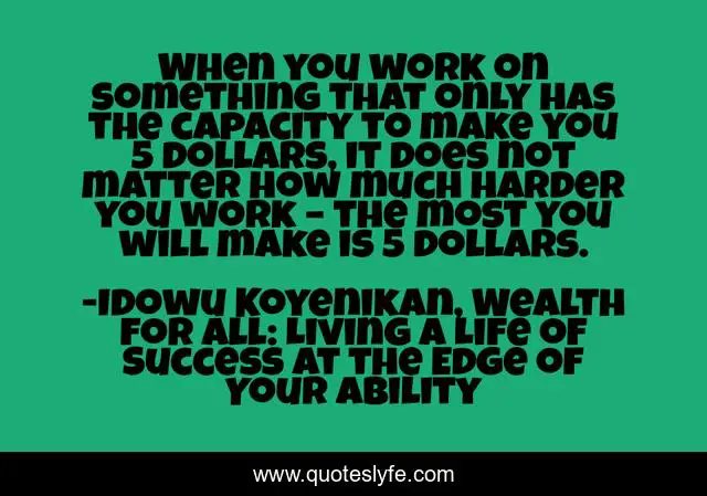 "Idowu Koyenikan, Wealth for All: Living a Life of Success at the Edge of Your Ability Quotes." Quoteslyfe.com, 2025. Sun. 14 Dec. 2025. <https://www.quoteslyfe.com/quote/When-you-work-on-something-that-only-32936>.