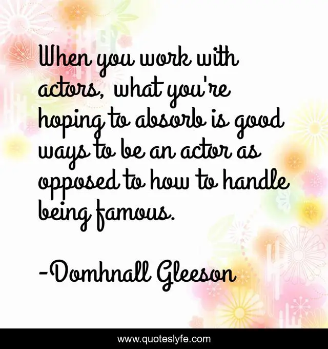 This page presents the quote "When you work with actors, what you're hoping to absorb is good ways to be an actor as opposed to how to handle being famous.". Author of this quote is Domhnall Gleeson. This quote is about work, good,.