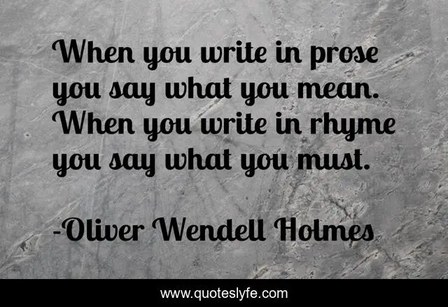 This page presents the quote "When you write in prose you say what you mean. When you write in rhyme you say what you must.". Author of this quote is Oliver Wendell Holmes. This quote is about poets, poetry,.