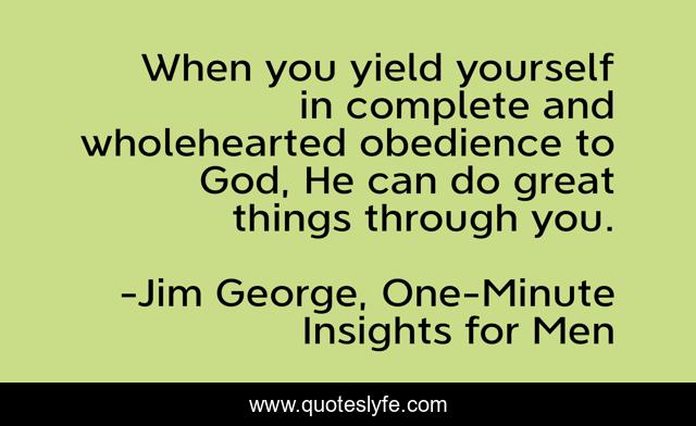 This page presents the quote "When you yield yourself in complete and wholehearted obedience to God, He can do great things through you.". Author of this quote is Jim George, One-Minute Insights for Men. This quote is about heart, great, christian, god, blessed, yield, jesus,.