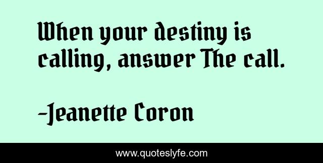 "Jeanette Coron Quotes." Quoteslyfe.com, 2025. Mon. 08 Dec. 2025. <https://www.quoteslyfe.com/quote/When-your-destiny-is-calling-answer-The-107129>.