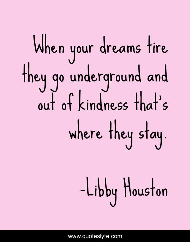 This page presents the quote "When your dreams tire they go underground and out of kindness that's where they stay.". Author of this quote is Libby Houston. .