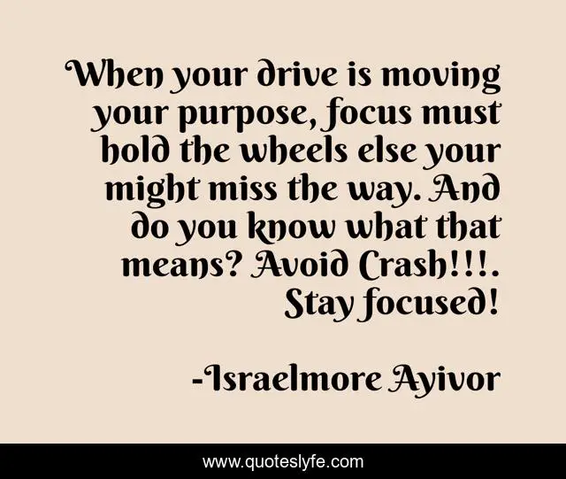"Israelmore Ayivor Quotes." Quoteslyfe.com, 2025. Sat. 06 Dec. 2025. <https://www.quoteslyfe.com/quote/When-your-drive-is-moving-your-purpose-46074>.