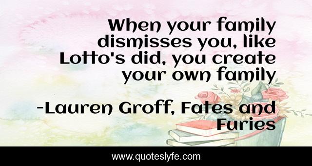 This page presents the quote "When your family dismisses you, like Lotto's did, you create your own family". Author of this quote is Lauren Groff, Fates and Furies. This quote is about love, family, affection,.