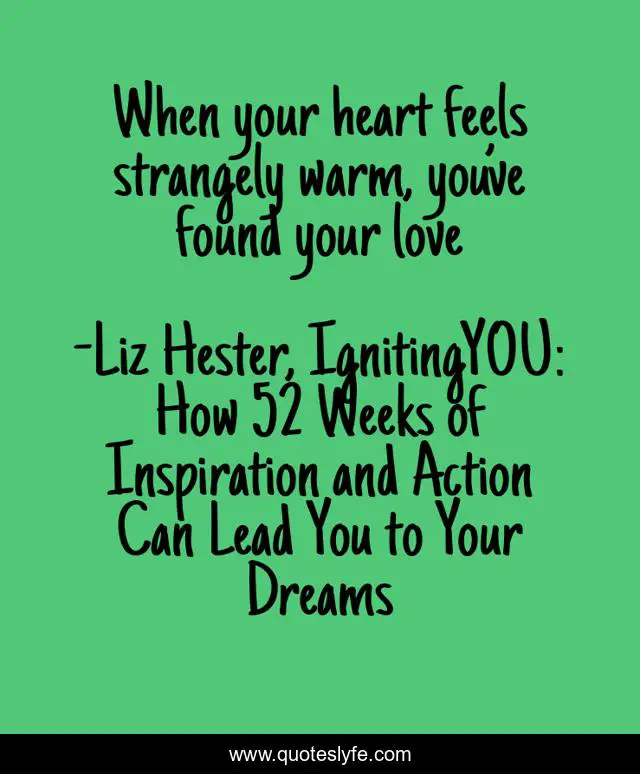 "Liz Hester, IgnitingYOU: How 52 Weeks of Inspiration and Action Can Lead You to Your Dreams Quotes." Quoteslyfe.com, 2025. Mon. 08 Dec. 2025. <https://www.quoteslyfe.com/quote/When-your-heart-feels-strangely-warm-you-131261>.