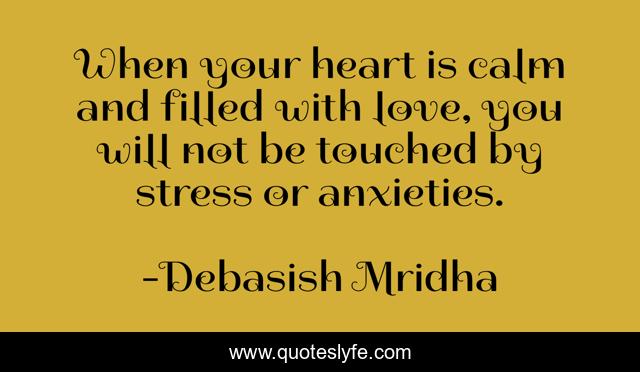 This page presents the quote "When your heart is calm and filled with love, you will not be touched by stress or anxieties.". Author of this quote is Debasish Mridha. This quote is about heart, filled-with-love, love, anxieties, philosophy, debasish-mridha, stress, quotes, inspirational,.