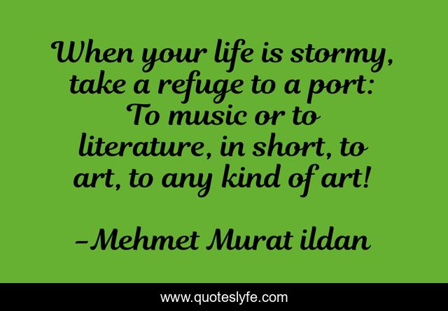 This page presents the quote "When your life is stormy, take a refuge to a port: To music or to literature, in short, to art, to any kind of art!". Author of this quote is Mehmet Murat ildan. This quote is about life, ildan-words, art, mehmet-murat-ildan, ildan-wise-sayings, turkish, ildan-wisdom, turkish-playwrights, life-and-sayings,.